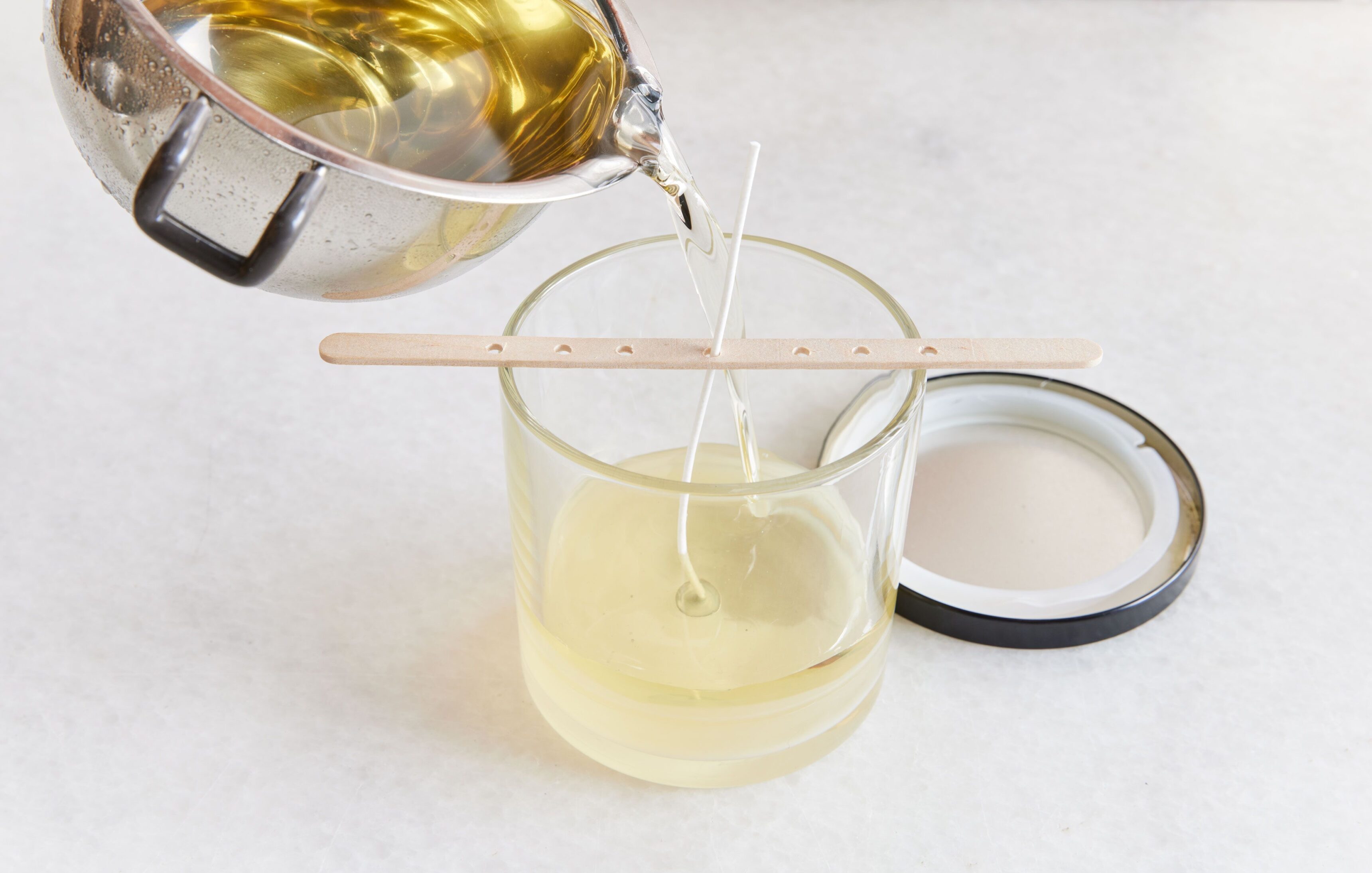1. Smelt de bijenwas au bain-marie in een hittebestendige kom.