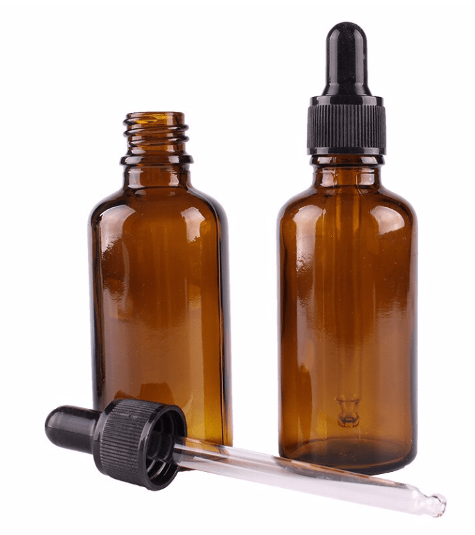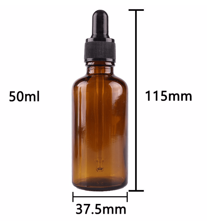 Amber (bruinglas) glazen pipetflesje – 50 ml – inclusief zwart pipet