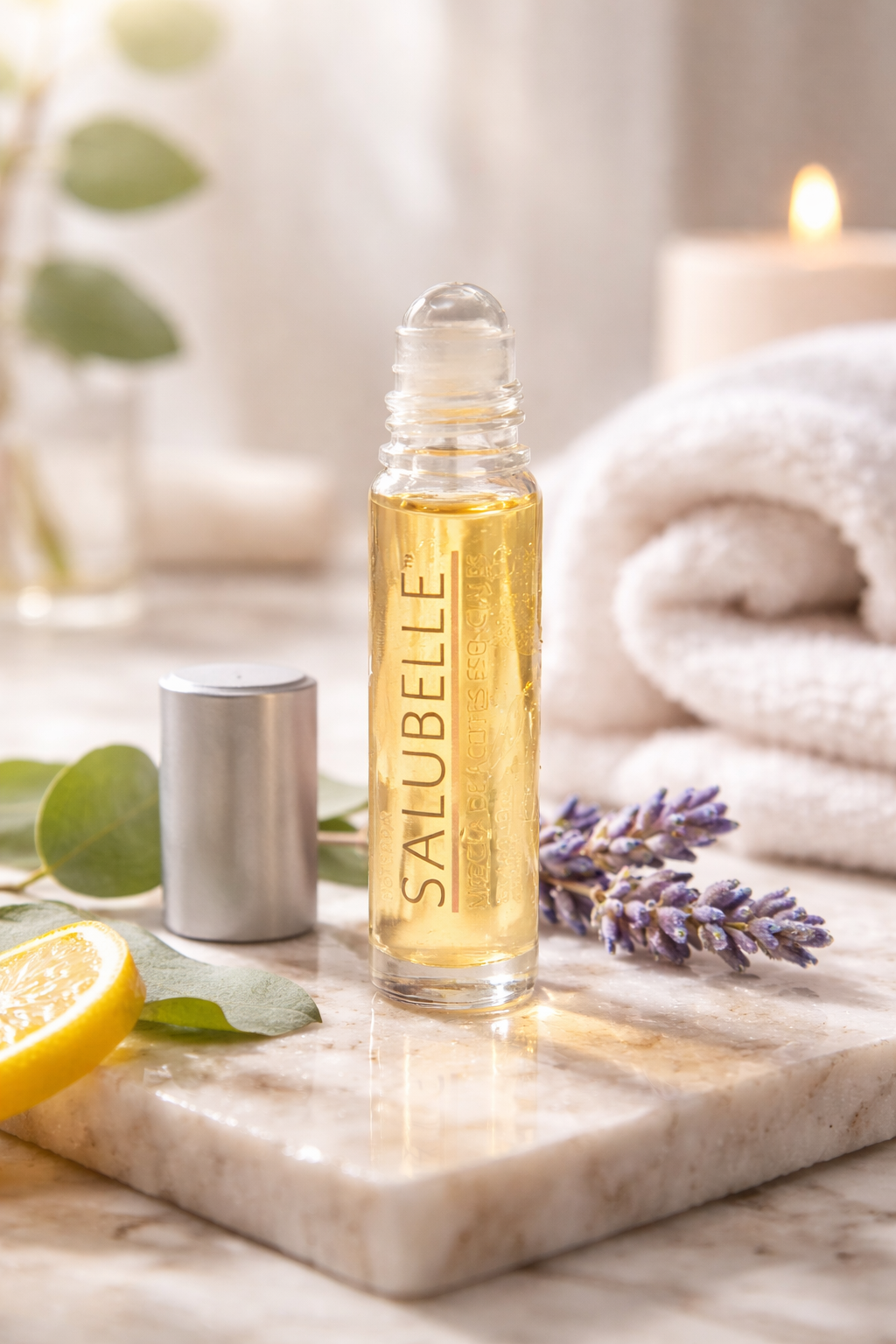 Deze gepatenteerde blend combineert zeldzame essentiële oliën die al eeuwenlang worden gebruikt om hun mooimakende eigenschappen. Salubelle Beauty Blend is ontwikkeld om de huid te ondersteunen en daarnaast factoren die bijdragen aan de aanblik van huidveroudering te verminderen. Deze unieke essentiële oliën zijn vakkundig geselecteerd om de huid ten goede te komen. Dankzij de handige roller is de Salubelle blend makkelijk aan te brengen op gezicht, nek en decolleté.