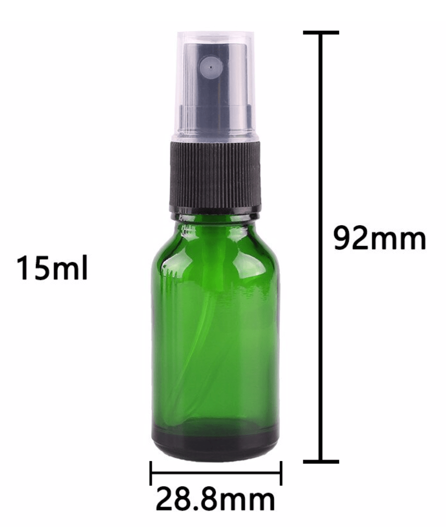 Groen glazen sprayflesje (15 ml)
